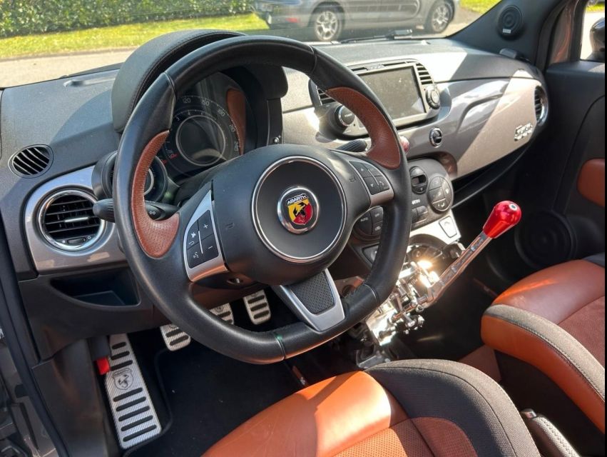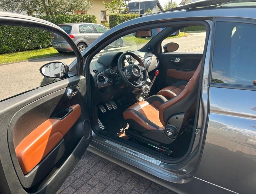 | Special Signs: | - offene Schaltkulisse, Bild 5 (3 und 4) - Schalthebel, sog. short-shifter, wie vor - Heckverstrebung Abarth / Domstrebe, Bild 6 - keine Rücksitzbank - 4 Rohr Edelstahlendtopf Magneti Marelli, Bild 8 - goldfarbene Felgen Tributo |